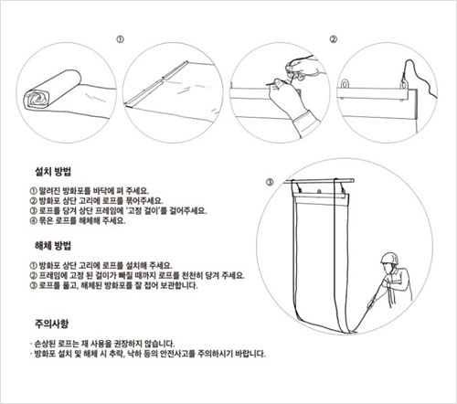 화재 발생 시 화재의 확산 방지와 대피를 위해 설치, 사용되는 화재 차단막입니다.