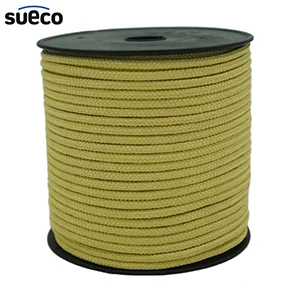 Product Details Attribute Value Material P-aramid Filament yarn 100% Weave Style Braid Color Yellow Max Temperature 250°C Diameter 4mm Beaking Strength 6,000N Length 100M/ROLL - P-aramid Rope 5Φ